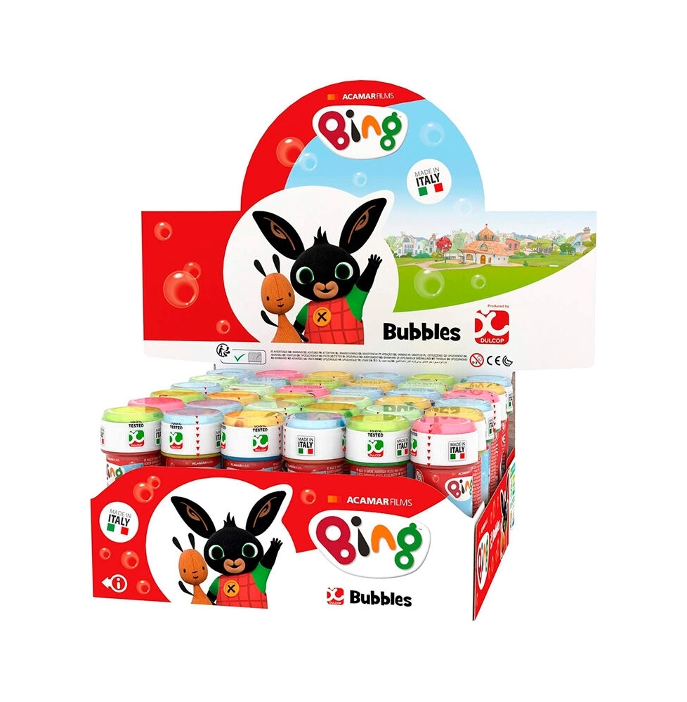 Capacidad: 60ml. Para hacer pompas de jabón. En expositor de 36 unidades. Edad: +3 años.