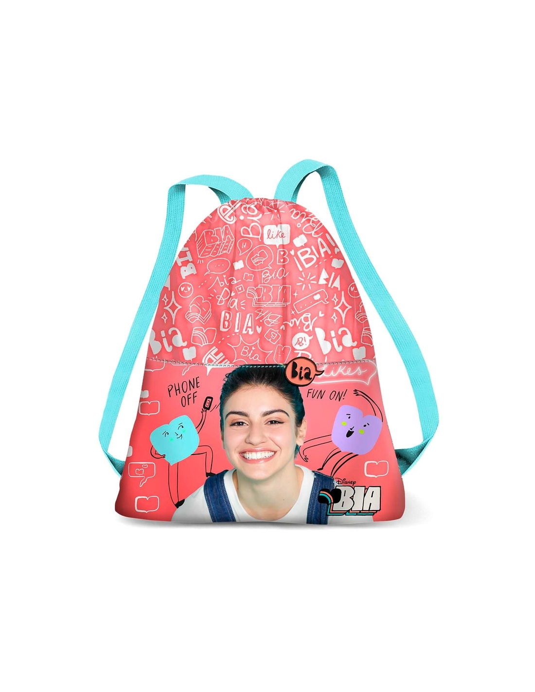 Tamaño: 41x35x1cm. Saco de cuerdas con amplio bolsillo exterior de cremallera. Sistema de seguridad antiahogamiento con velcro en las tiras.