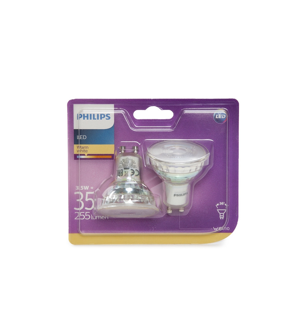 Bombilla LED Philips GU10 36D 3,5W 255Lm Blanco Cálido (2 Unidades)