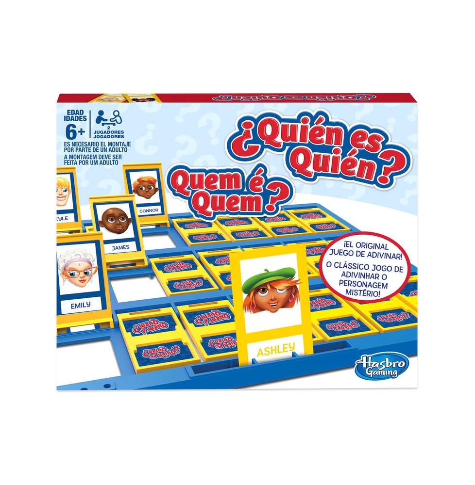 Tamaño: 4,1x30,5x25,4cm. Edad: a partir de 6 años. Español y Portugués. Incluye 2 tableros de juego, 48 tarjetas de personajes, 24 tarjetas de personaje misterioso, 2 marcadores con 10 clavijas e instrucciones.