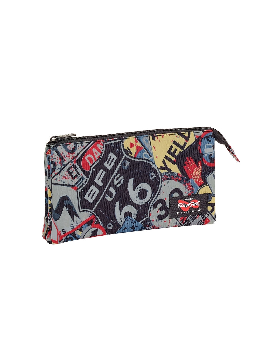 Tamaño: 22x12x3cm. Con 3 compartimentos separados con cremallera. Bolsillo interior central con cremallera.