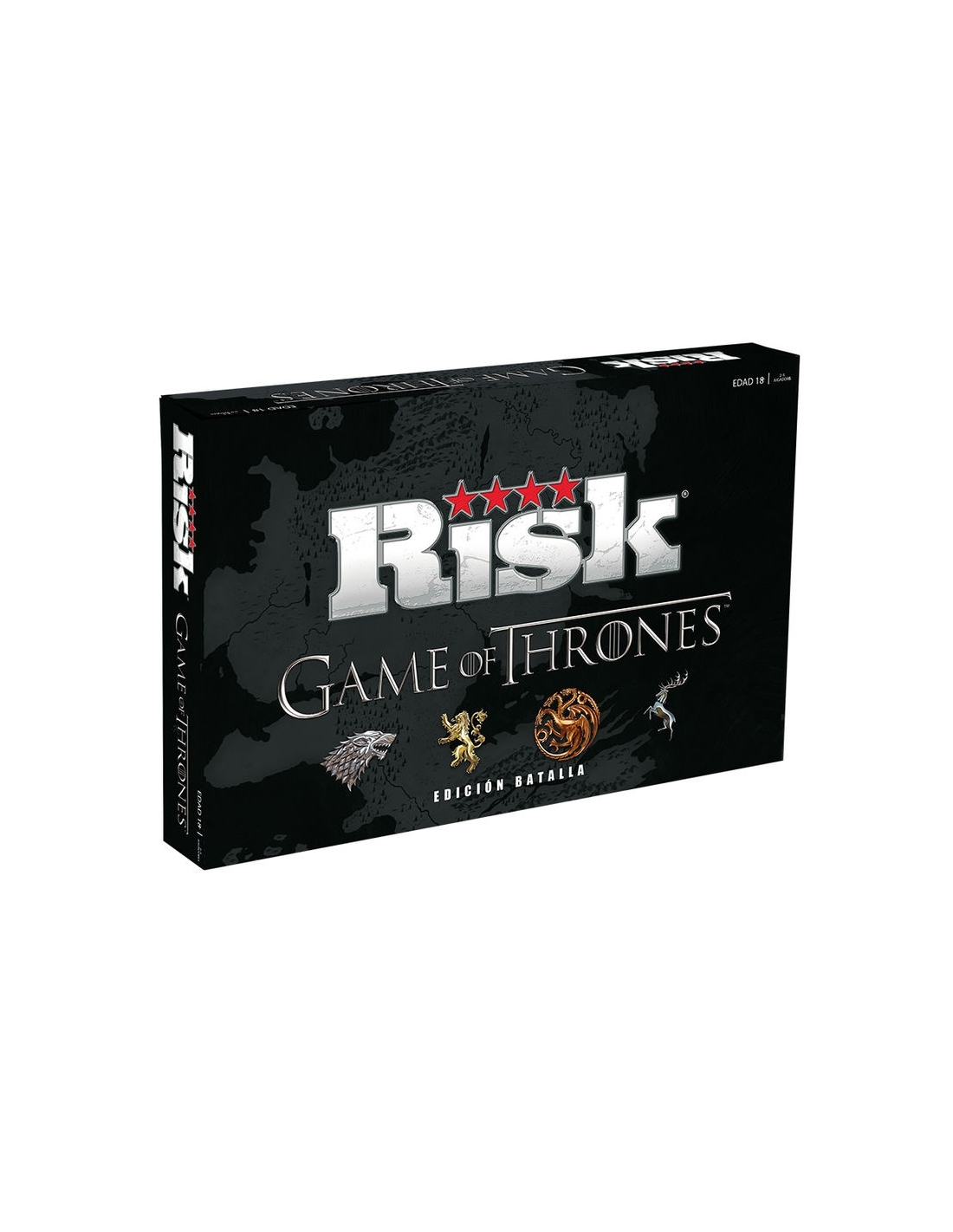 Disfruta de esta edición Juego de Tronos del Risk, el emocionante juego de estrategia y conquista. En castellano. Risk Game of Thrones (Spanish). Edad: +18. 2-5 jugadores. Contenido: Tablero mapa Poniente, 5 Ejércitos, Estuche, Cartas de Territorio, Reglas, Cartas de Fin de Partida y 5 dados.