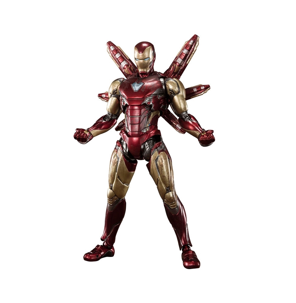 S.H. Figuarts. Iron Man MK-85 Final Battle. Figura articulada. Tamaño: 16cm. PVC. Inlcuye accesorios: cabeza alternativa de Tony Stark, 4 pares de manos, efectos repulsores, nano reenfocador de rayos, escudo nano y base para exposición.
